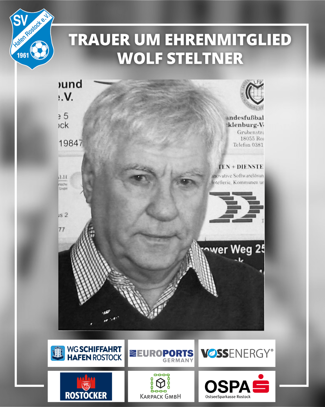Mit Bestürzung hat der Sportverein Hafen Rostock 61 vom Tod seines Ehrenmitglieds Wolf Steltner erfahren. Wolf Steltner war über viele Jahre eine feste Größe im Verein und prägte insbesondere die Sparte Kegeln. Von 1995 bis 2010 leitete er diese Abteilung und engagierte sich in dieser Funktion für den Verein und seine Sportler. In der Chronik des Vereins wird er als langjähriger Wegbegleiter und treuer Unterstützer genannt.